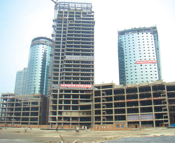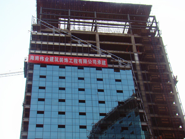 本工程施工條件復雜、難度大、質量要求高,采用180系列明框和隱框玻璃幕墻型材,中空鋼化玻璃使用6+12A+6,裙樓使用19mm厚加肋鋼化落地清玻璃櫥窗、8+1、2+6點式鋼化玻璃雨棚,以及干掛鋁單板造型,干掛石材幕墻和廣告牌的制作。幕墻最高點標高為119.95米,風壓高度變化系數(shù)為1.834,風荷載最大值為1.95KN/㎡,最大設計值為3.16KN/㎡,抗風性能達三級;地形地貌按C類取值;抗震防裂度八度設防。