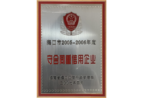 海南偉業(yè)2005年-2006年守合同重信用榮譽(yù)證書(shū)